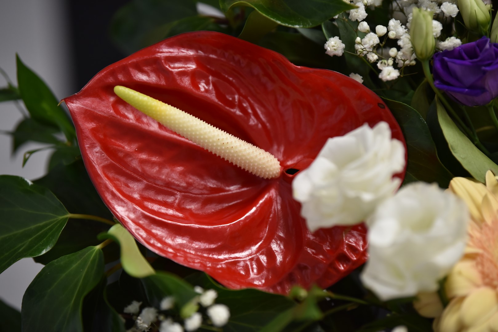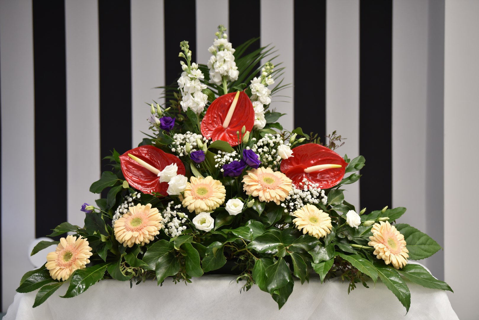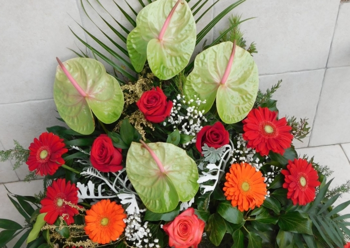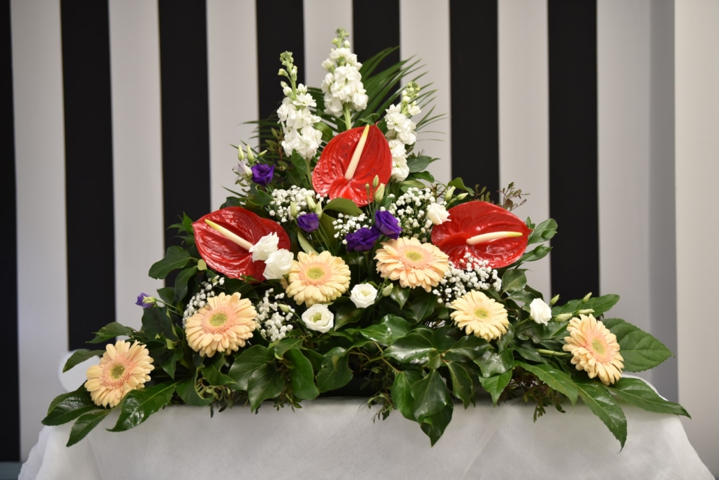 Aranžman za pogreb – orhideja, viola, liziantus