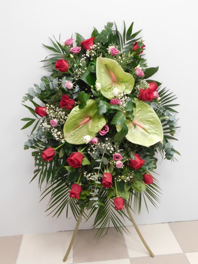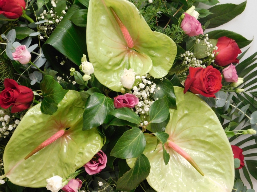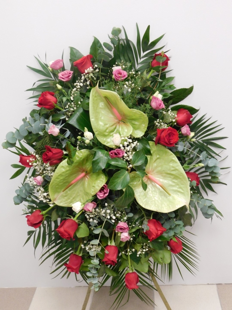 Vijenac za pogreb – antharium, ruže, liziantus